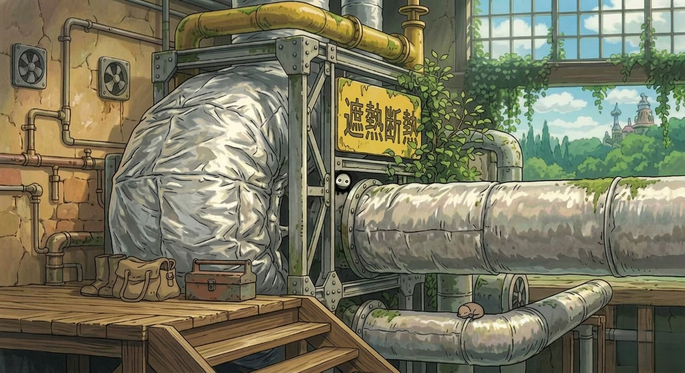 工場内の設備断熱のご提案 約20%節電と環境改善 ワンタッチで着脱可能なすぐれものです。